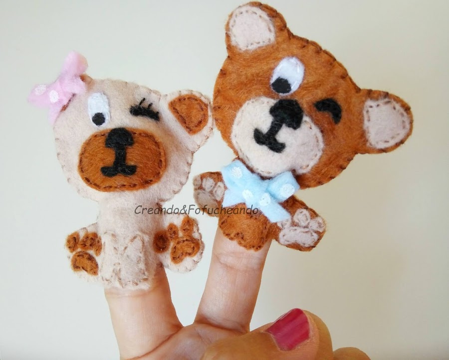 He hecho unos Títeres de dedos de unos ositos,muy dulces ellos,chico y chica u osito y osita,jajaja.