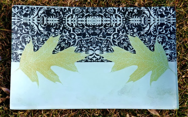 Se trata de una bandeja de cristal que he decorado con una servilleta y utilizando la técnica del decoupage. La servilleta se coloca por la parte inferior pegándola con agua y cola, luego se le aplica pintura para fijar los tonos y resaltar los colores y por último con un barniz al agua se le da el toque definitivo.