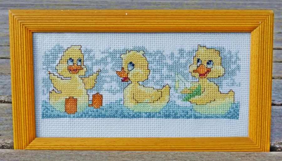 Aquí os muestro un cuadrito pequeño, pero con mucho trabajo, se trata de unos simpáticos patitos chapoteando en el agua. Es una de esas piezas que igual pegan en la habitación de un bebe, en el baño o en cualquier rincón que queramos poner un toque de color.