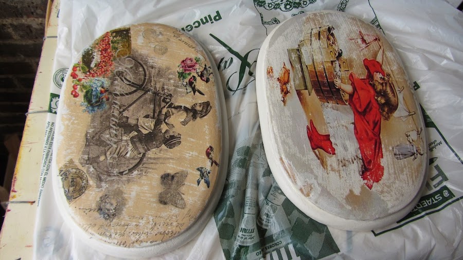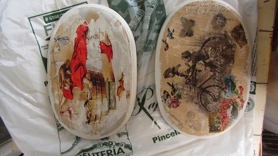 Le dí con una cuchara para que se pegará bien el dibujo a la madera y lo dejé secar hasta el día siguiente.