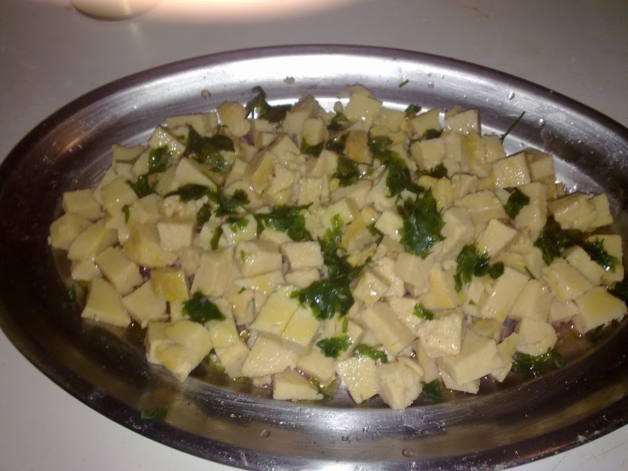 esto es la misma maza pero kortada a takitos ,s aliña kon cebollas largas aceite vinagre perjil y sal y a esto s l llama huevos d frailes