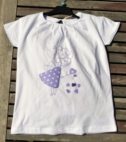 Me parece súper dulce y para rematar le hice un coletero de un lacito en la misma tela del vestido del hada. Un conjunto que encanto tanto a la tía como a la sobrina. Gracias Raquel por confiar en mí para hacer esta camiseta ?TAN MAJA?.