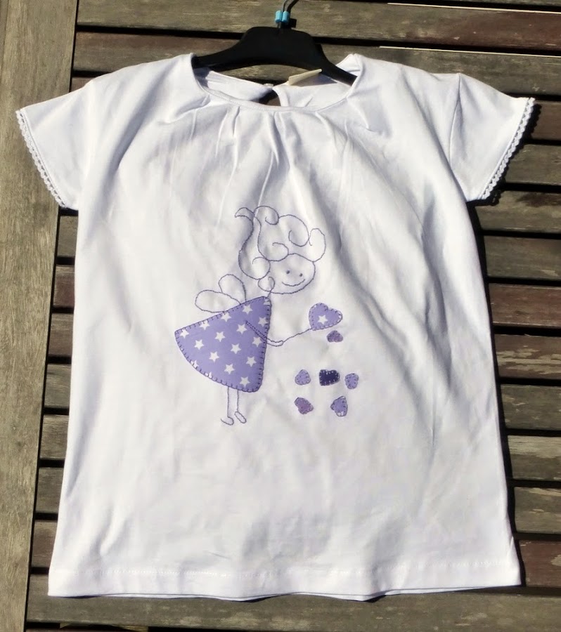 Hoy os enseño una de mis camisetas favoritas. Fue un encargo de mi compañera Raquel para su sobrina. Tenía que ser algo muy femenino e infantil y el tono elegido fue el lila.