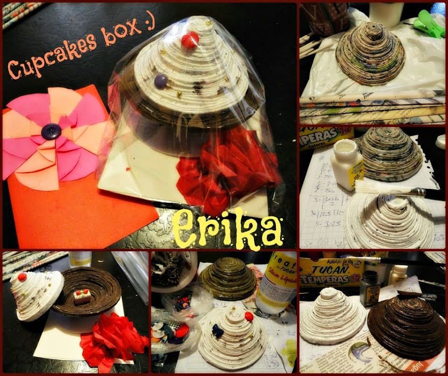 Este pastelito lo hice con rollitos de periódico , al ser de mis primeros trabajos lo pinte con Temperas escolares, luego me fui dando cuenta que con Acrilicos el acabado es más fino .