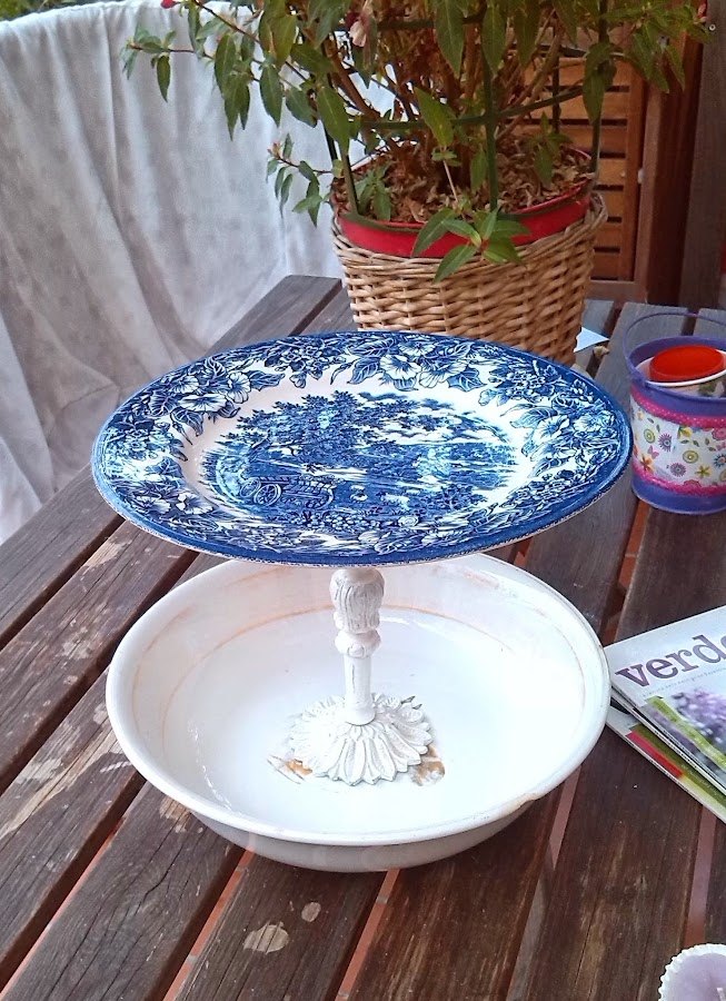Con una ensaladera, el pie de una lámpara y un plato de porcelana inglesa.... un práctico frutero.