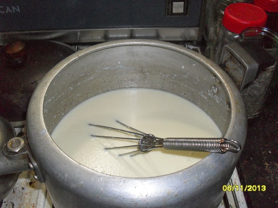 He aquí la olla cuando empece y la producción total tengan en cuenta que yo hice el doble de la receta por eso me salieron tantos francos,si no salen 3 de los comunes de mermelada o casi dos de los grandes ((son los de café instantáneo))