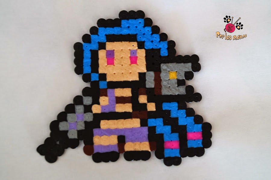 Sigo con mi racha de hama beads y ayer por la noche me puse a hacer a Jinx, campeona de League of Legends. Como no había ningún patrón en internet ni ninguna figura con la que pudiera inspirarme me la he inventado entera. Y la verdad es que estoy satisfecha con el resultado. No me he arriesgado añadiendole sombras porque no sabía como podía quedar, pero es un primer intento. Por si os gusta os dejo el patrón debajo. ¡Espero que os guste!