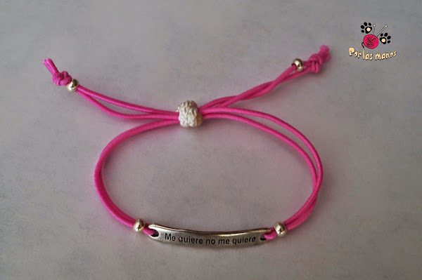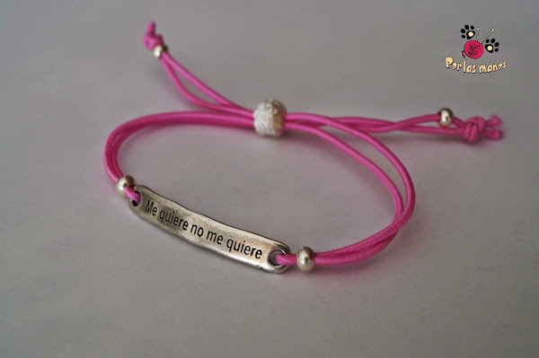 Os traigo otro modelo de pulsera con la placa "me quiere no me quiere". ¡Nos gusta tanto que vamos a hacer más con otras frases! Espero que os guste.