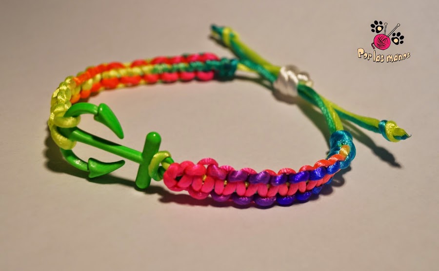 Con la llegada del verano quería hacerme una pulsera que contenga un ancla, y tenía varias ideas en mente, así de motivo marinero, pero dado que los cordones que tenía eran demasiado grandes al final he hecho una pulsera macramé de colorines. Muy llamativa y con un ancla verde. ¡Perfecta para lucirla en verano! Espero que os guste!