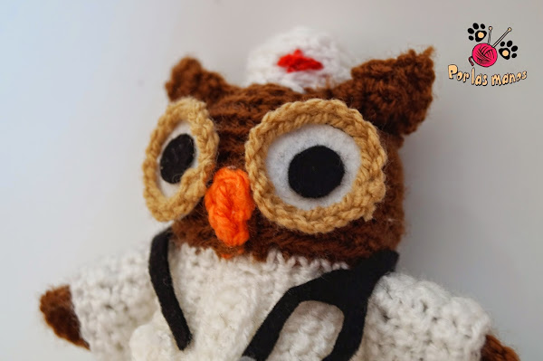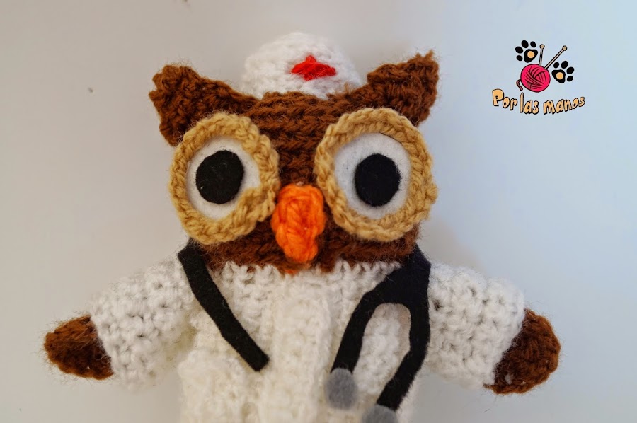 Os presento a nuestro búho médico. ¡Dos tardes he tardado en hacer este amigurumi! ¿Por qué? Porque lo he hecho todo a ojo, sin patrón y solo fijándome en una imagen de Internet. Pero estoy bastante contenta con el resultado, y espero que también os guste a vosotros!