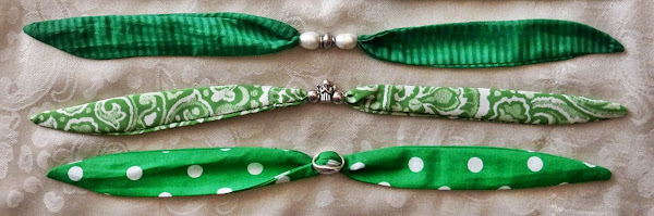 Hoy os enseño unas pulseras hechas con distintas telas en los colores laurentinos y con unos abalorios, que me ha proporcionado Vanessa, que en cada pulsera son diferentes y que hacen que cada una de ellas sea única y exclusiva, aunque formen parte de la misma colección.