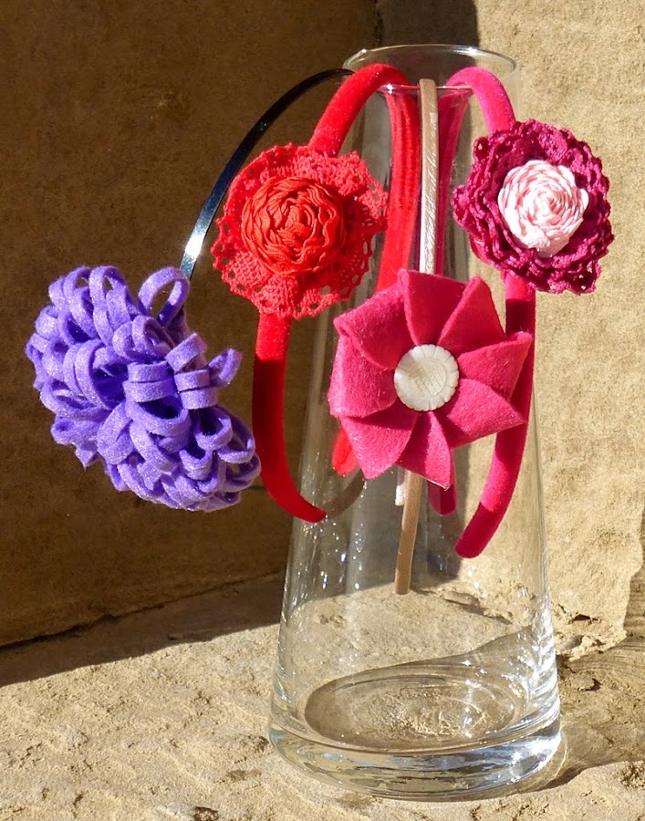 Los materiales utilizados para los adornos son muy diversos, cintas, piculina, puntillas, fieltro, tela, botones?. En fin, un poco de todo para hacer cosas diferentes y que puedan gustar a todo el mundo.