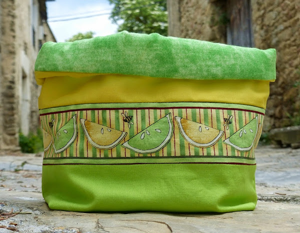 Así que: manos a la obra a buscar cosas de limones. Un día visitando una feria de patchwork encontré una tira de tela con limones, y no me lo pensé ni un minuto.