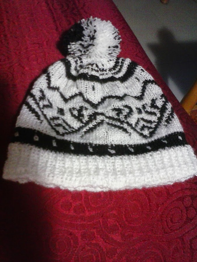 Os parecerán dos gorros, pero no, es uno solo visto por sus dos caras, punto reversible, es lo que mas me gusta hacer, parece dificil, pero no lo es, solo cuestión de tiempo y concentración. Lo mas complicado es hacer aumentos o menguados, pero no es imposible, aunque hay quien piensa que si o que solo se pueden hacer en los extremos de la labor, os aseguro que no es cierto, en el gorro tienes que ir menguando en la parte superior para darle la forma :)