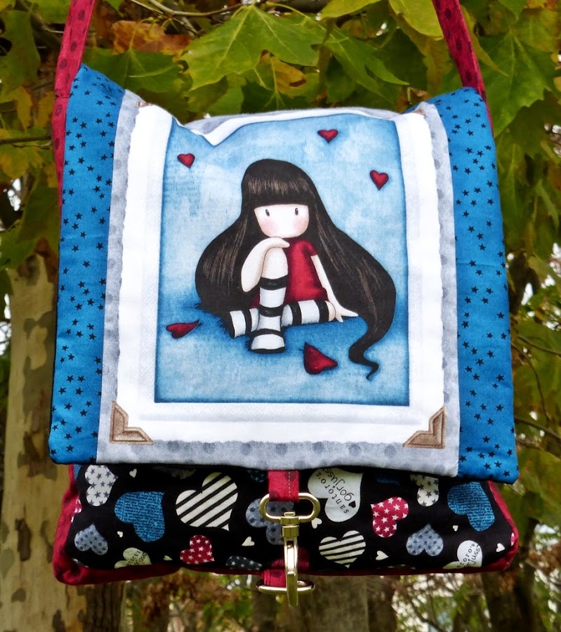 Hoy os enseño un bolso, en cuya solapa he puesto una muñeca Gorjuss, y que luego he ido combinando con otras telas de la colección.