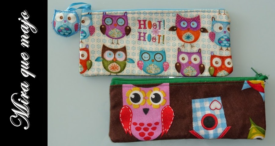 Las telas elegidas son de búhos (el tema de la temporada), una en tonos azules y otra en tonos marrones y verdes. Son unos estuches muy prácticos no solo para los más pequeños sino también para los mayores que siempre llevamos nuestros lápices y bolígrafos bien organizados.