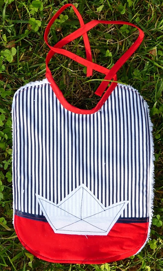 Hoy os enseño un babero muy bonito que, como sabéis, es otra de mis debilidades. Se trata de una pieza marinera, una combinación que no había usado hasta ahora, pero en la que el resultado me encanta.