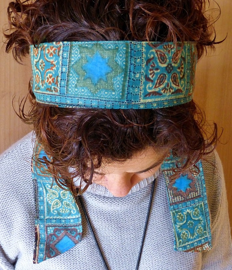 Se trata de unas cintas para el pelo, y una tenía que ser obligatoriamente en tonos granates con un abalorio en forma de flor (Vanesa quería esa combinación), y la otra la elaboré con una tela en tonos marrones por un lado y azules por el otro, que la convertían en una cinta reversible para llevarla del lado que más te guste o mejor combine con lo que llevas.