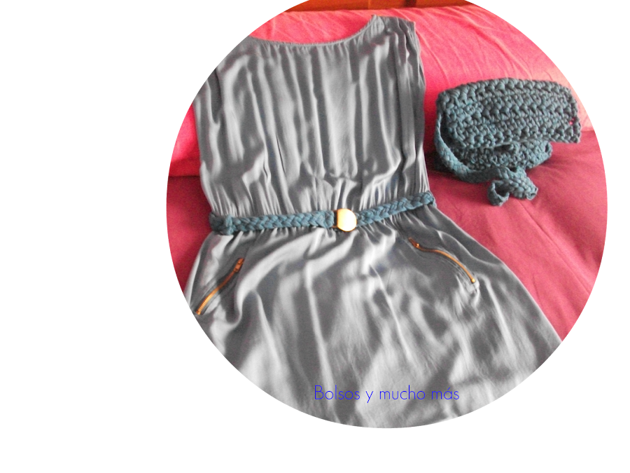 No tenía ningún bolso que me conjuntara asi que decidí hacérmelo yo con trapillo. Ya aproveché y me hice un cinturón por que había algo que me faltaba en el vestido. Esto fue lo que salió.