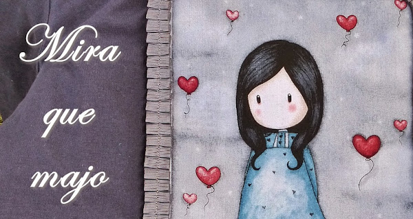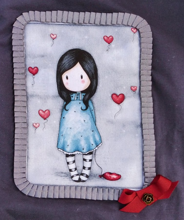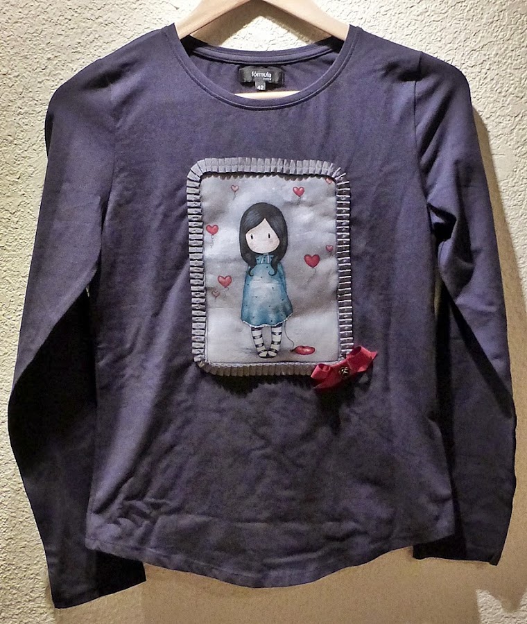 Esta semana estoy la mar de amorosa, pero no os preocupéis que la semana que viene pienso compensarlo. Hoy os enseño una camiseta con una aplicación de las muñecas Gorjuss, pero llena de corazones, porque estas muñecas desprenden mucho amor.