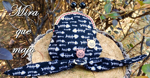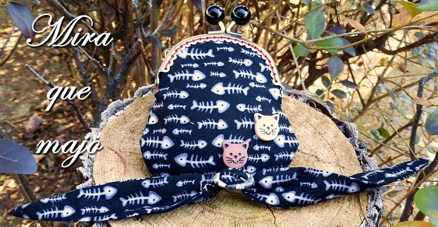 Hoy os enseño un nuevo modelo de monedero en el que he usado una tela divina, que encontré en alguna de esas tiendas que me recorro cada vez que tengo oportunidad. Es un tejido negro con un estampado de raspas de pescado en blanco, con el que he hecho cantidad de cosas porque combina con todo y siempre queda bien.