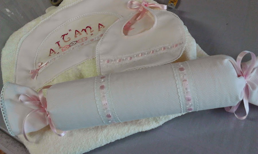 MI MAMÁ ME MIMA Y YO MIMO A MI MAMÁ En otras ocasiones os he enseñado algún babero con esta frase a la que le tengo mucho cariño. Debe ser por mi profesión y porque muchos niños hemos aprendido a leer con ella. Hoy os enseño un conjunto en el que está el babero y la bolsita, y en cada pieza hay una parte de esta frase tan conocida. El tono de las piezas es en rosita, con una tela muy simpática y ...