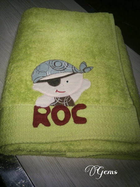 Tovallola amb dibuix i nom aplicat en tela de cotó i rús 100%. Ideal per la dutxa o piscina.
