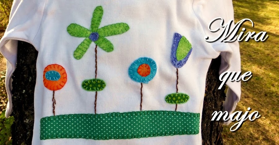 Hace unos días me regalaron un libro chulísimo para hacer aplicaciones. Me gusto tanto que en una sola mañana hice varios de los trabajos que aparecían en el libro y una de las labores es este body de flores.