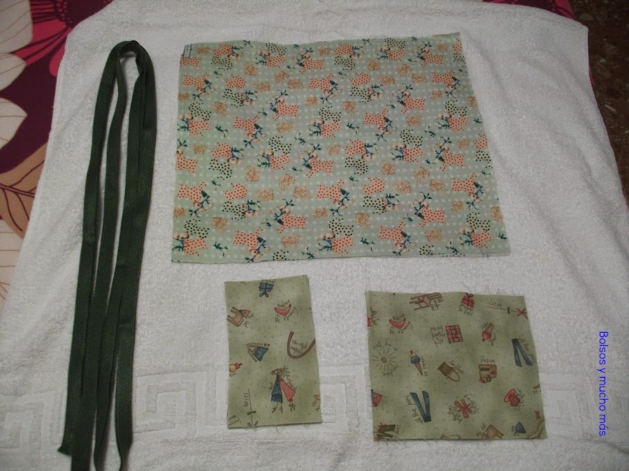 - 2 rectángulos de 14 X8 ctms para los bolsillos de la otra tela.