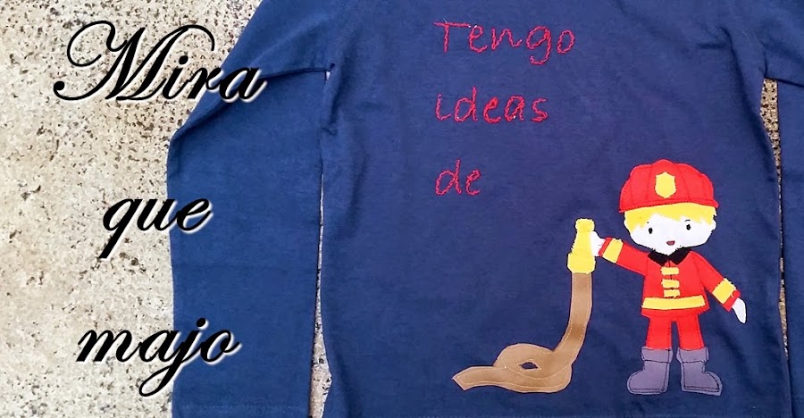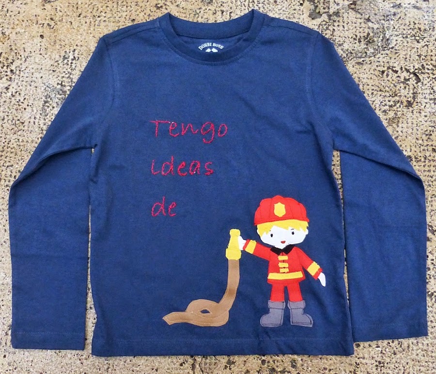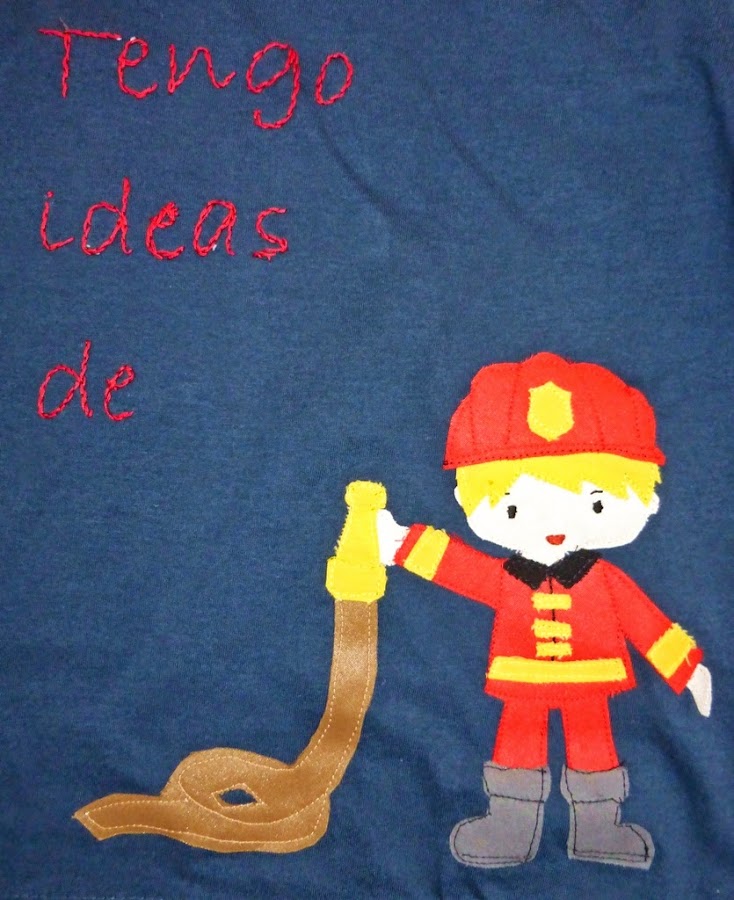 A Tomás le encantan los bomberos y todo lo que tenga que ver con ellos y además es un niño despierto, ocurrente y muy chisposo. Un día estábamos pensando en hacerle una camiseta para su cumple relacionada con los bomberos y a Pablo (mi otro hijo) se le ocurrió una idea genial: que en la camiseta pusiera "tengo ideas de bombero", porque realmente Tomás las tienes a montones.