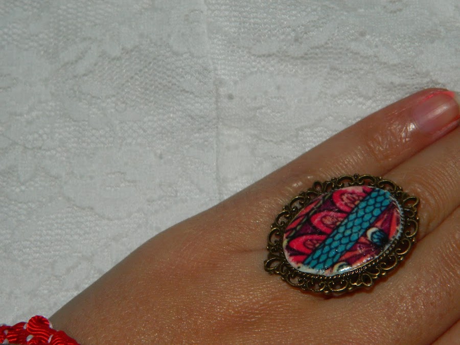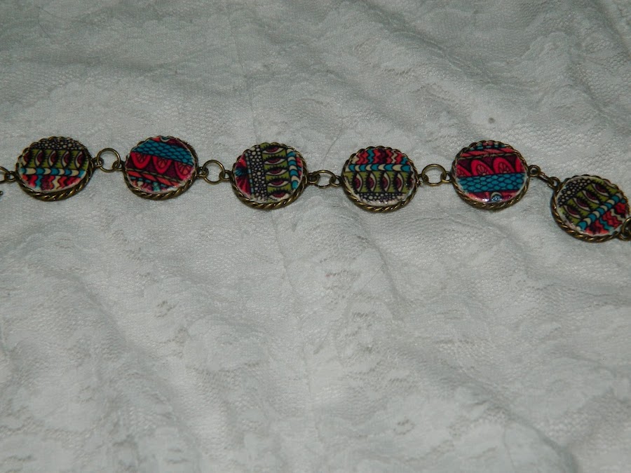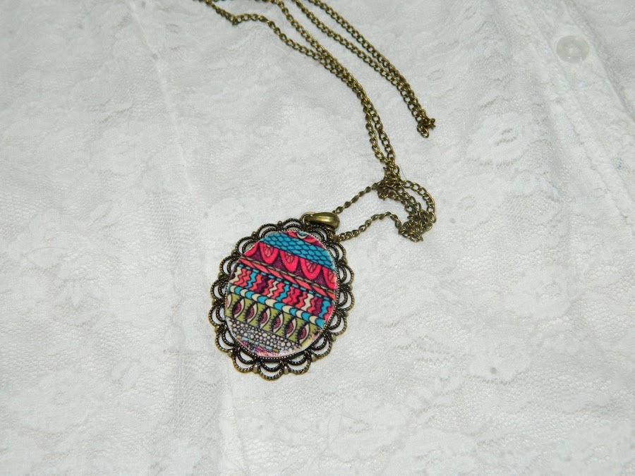 Nuevo camafeo con fondo azteca. Es increíble como queda la combinación de colores fuertes con este tipo de colgantes.