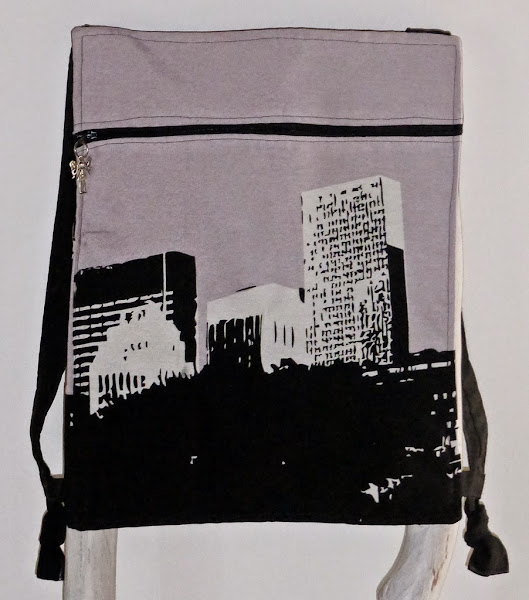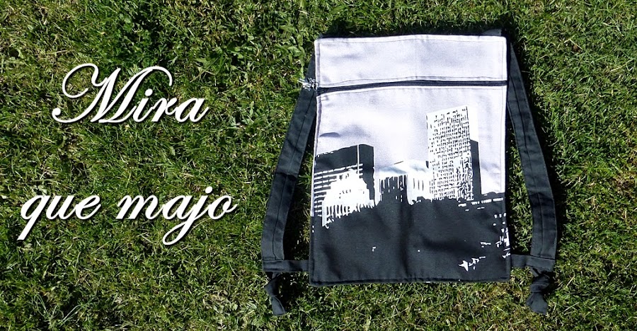 Se trata de una mochila con rascacielos en colores negros y grises. El modelo de Mochila es el que hago habitualmente, y que no paro de hacer porque siempre gusta en todas sus versiones, y la tela ha quedado muy curiosa, eligiendo bien el corte para que luciera a tope.