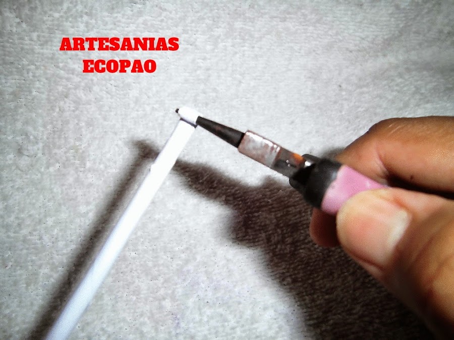 25. Ahora con ayuda de un pinza, hacemos un rollito