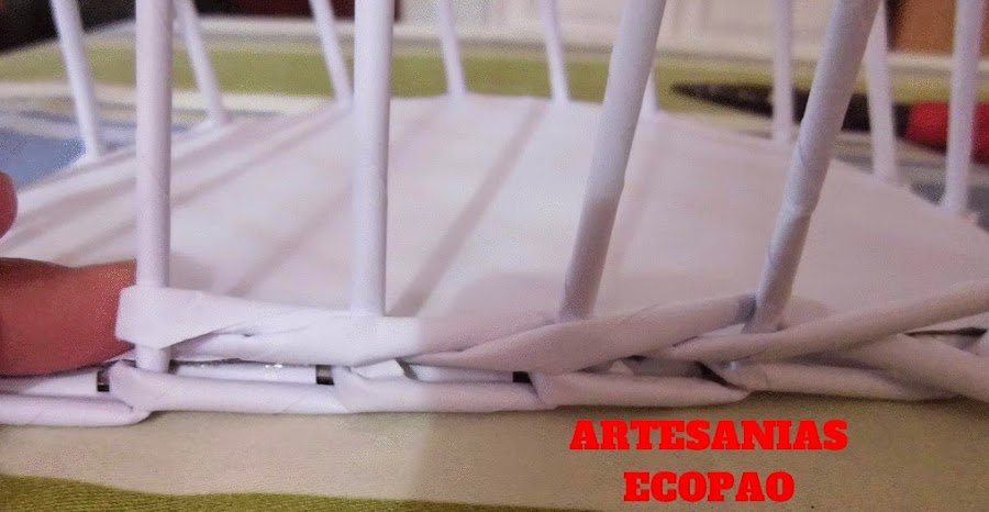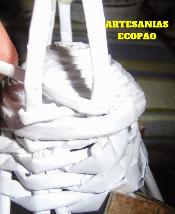 14. Así vamos tejiendo al rededor y hacemos 3 vueltas completas.