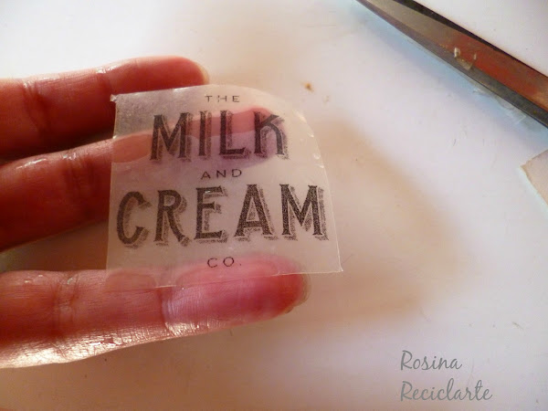 Después imprimí una etiqueta y usé la técnica de truchi-transferencia que ya había mostrado acá,pero esta vez en lugar de cinta adhesiva usé papel contact.