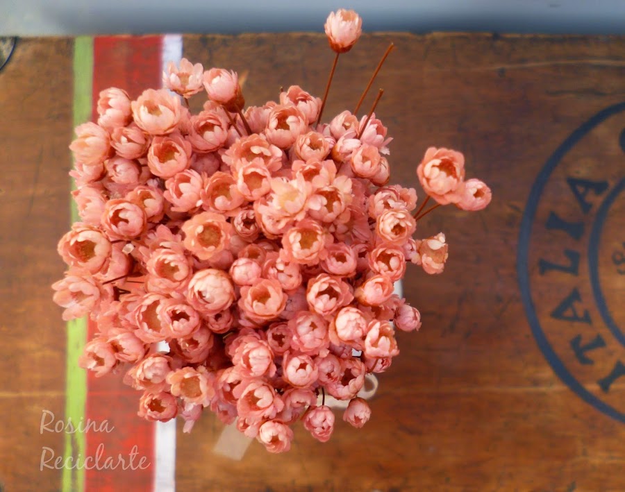 Unas flores secas del tiempo del jopo y una cinta bastaron para convertirla en un amoroso detalle para decorar cualquier rincón de la casa.