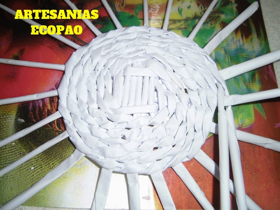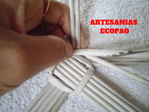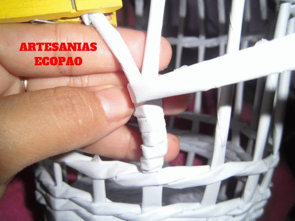Con ayuda de otro rollito, se continua el tejido por encima de la tira de papel.