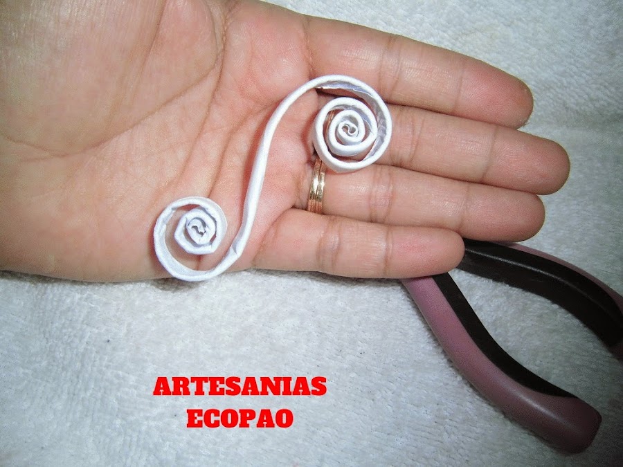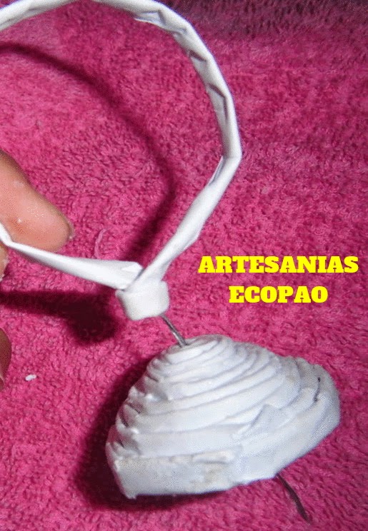 Alambramos un rollito de papel y le damos una forma ovalada.