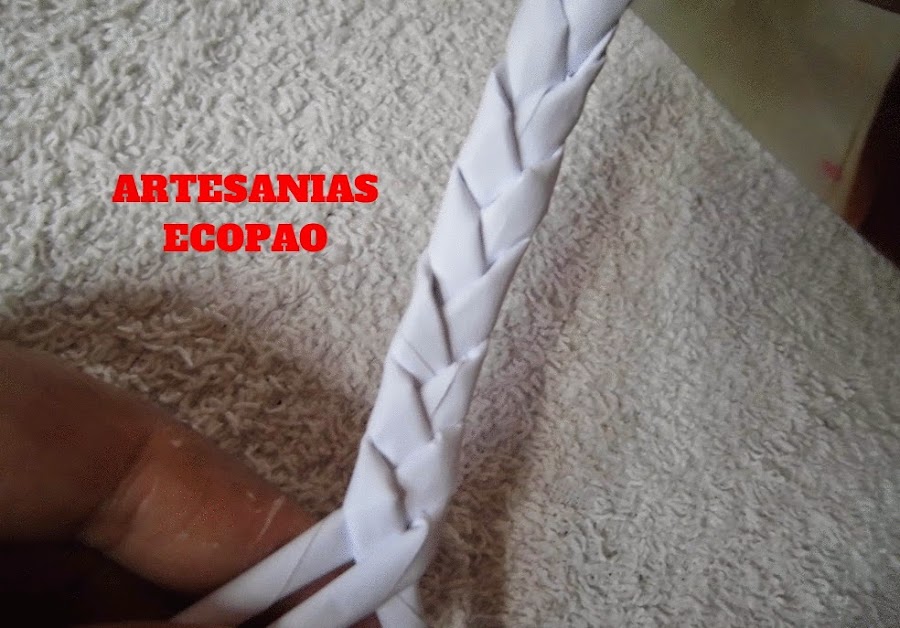 Hacemos una trenza sencilla con 3 rollitos de papel.