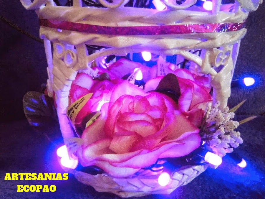 Les comente en algunos trabajos anteriores que podíamos decorarlas con flores, pajaros, mariposas, luces, fotos, corazones, etc. Pues una de las que mostrare a continuación, le coloque luces LED y debo decir que me encanto, modestia a parte. Esta jaulita con luces se queda conmigo, dando un poco ese toque romántico para la habitación. Espero les guste.