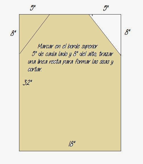 .- Colocar los rectángulos de la Tela A de 18" x 32", uno encima del otro y marcar en la parte superior 5" de cada lado y 8" del costado.