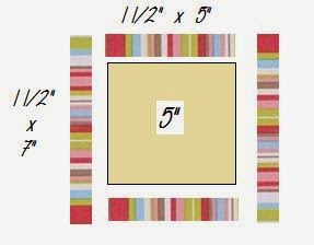 4 cuadrados de 7" x 7" 1 tira de 3 ½" x 13"