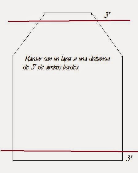 .- Dibujar con un lápiz una línea continua a 3" de cada borde, tanto inferior como superior, solo en la tela que será el frente de nuestro delantal.