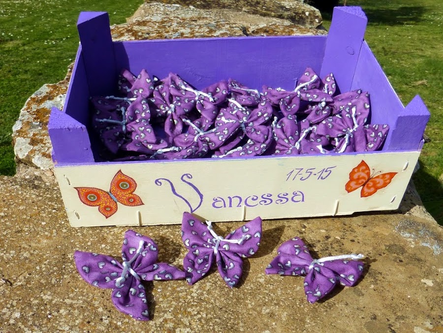 A Vanessa le encantan las mariposas y le encanta el color morado, así que para su comunión tenía que ser ese el tema de los recuerdos, de manera que significara algo para ella.