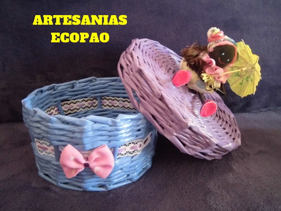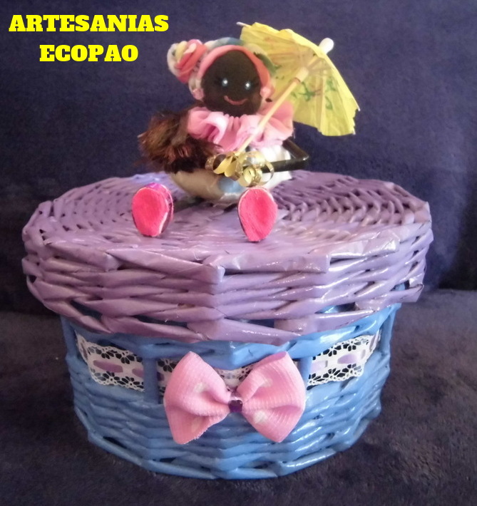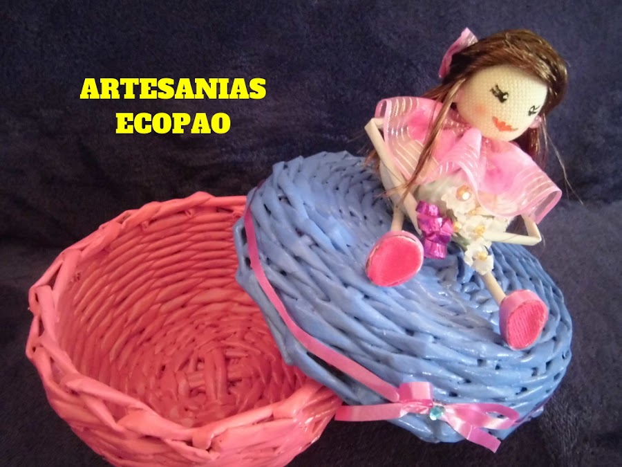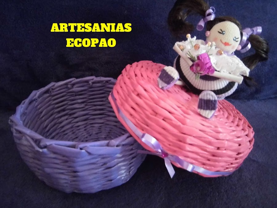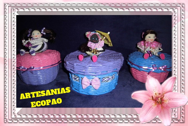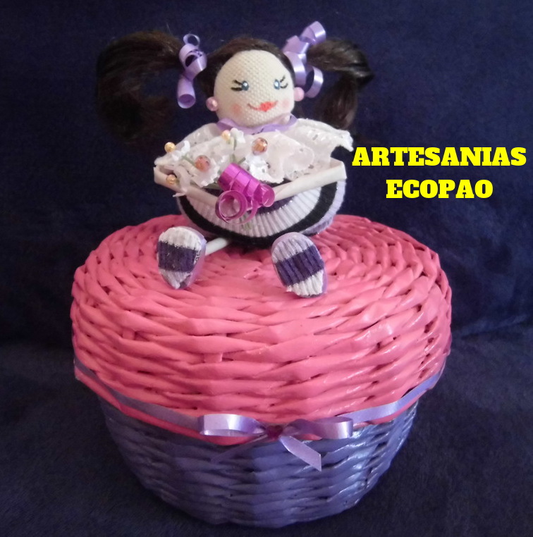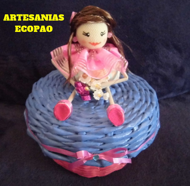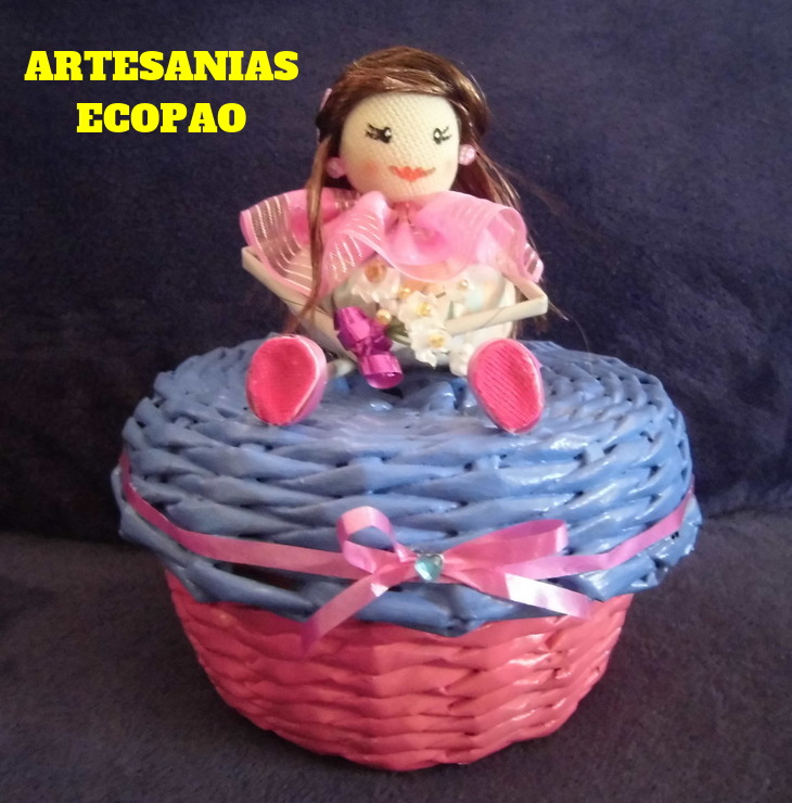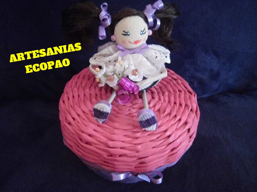Hola amigos les comparto mi nuevo trabajo, son cestas con tapas decoradas con muñecas de tela. Reciclaje al 100 %