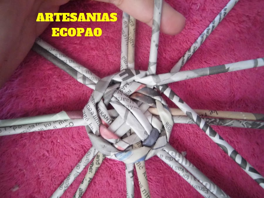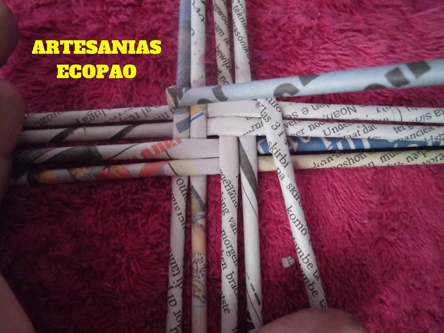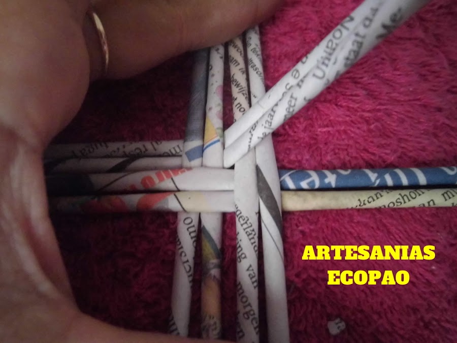Y con un rollito doblado a la mitad comenzamos el tejido, agrupando de a 2 rollitos.