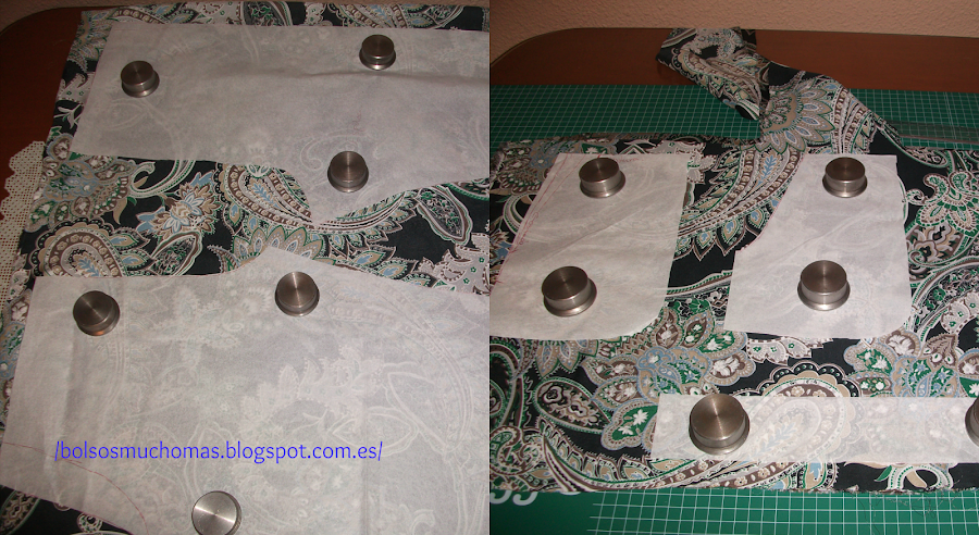 Como es una tela muy resbaladiza os aconsejo sujetar bien los patrones a la hora de cortarla. Yo tengo unos tacos de metal que me trajo mi marido de su trabajo que me vienen muy bien para estos casos.