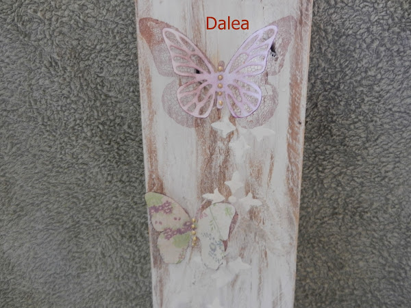 La mariposa es de Marhta en papel de scrap los bordes entintados y el el centro lágrimas de pearls doradas,