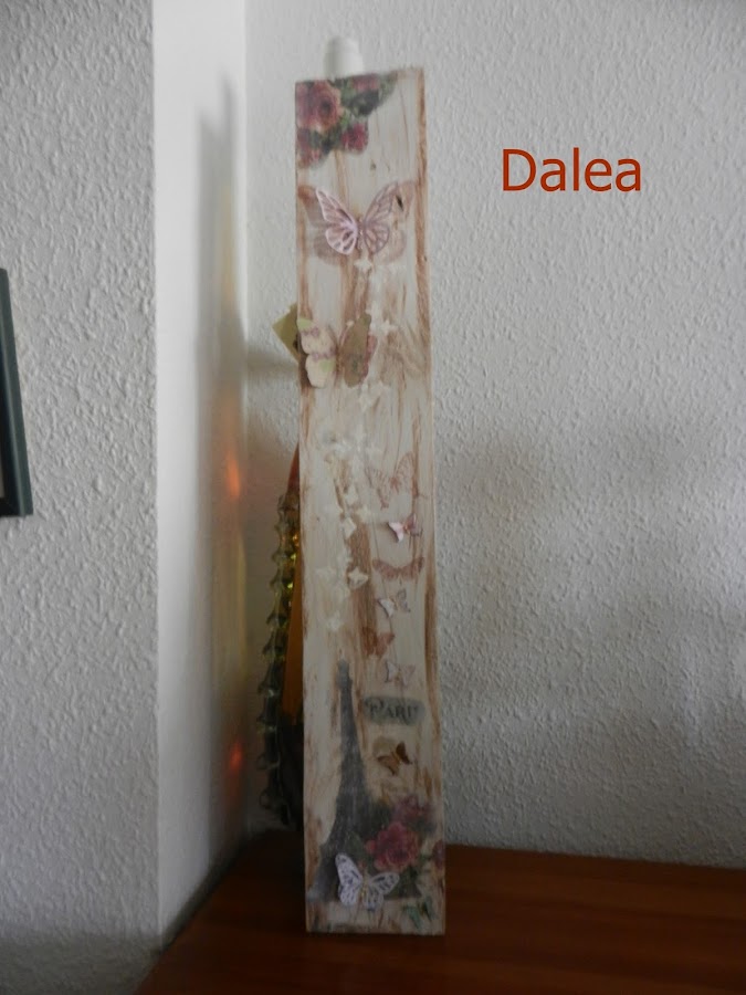 Es un palet, que le he dado una mano de Gesso , encima unos toques de Medio de apariencia Antigua. Lo siguiente ha sido una lijada fina.