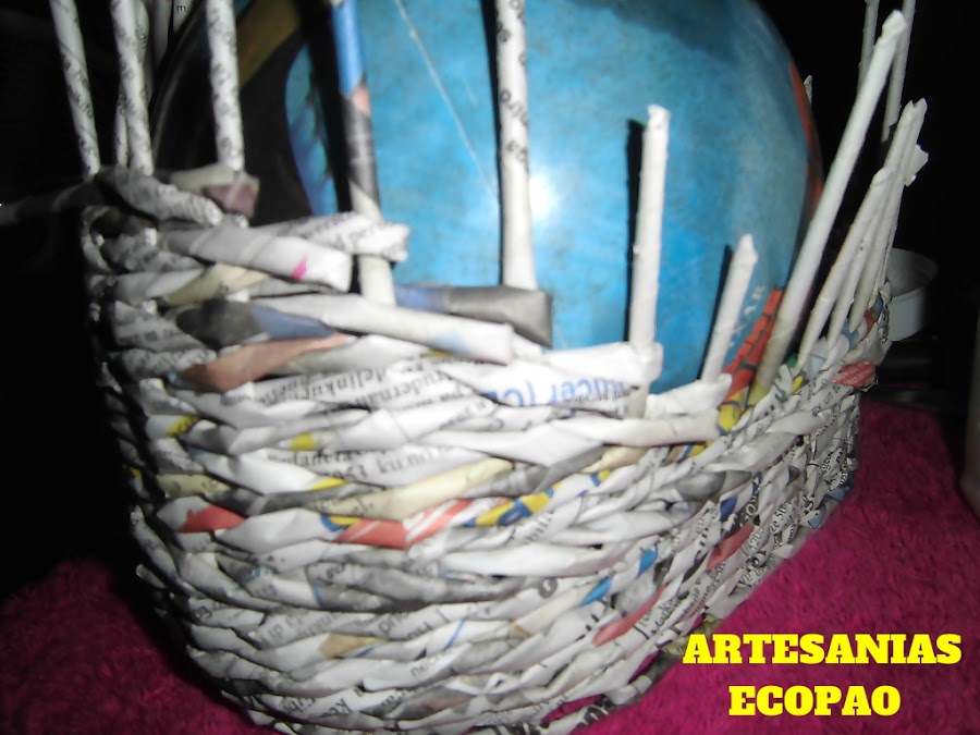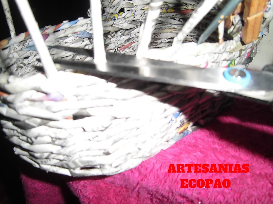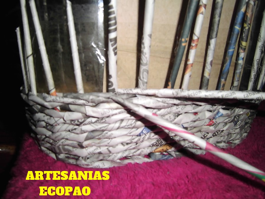 Al llegar al otro extremo, cortamos y pegamos los rollitos con que estábamos tejiendo.